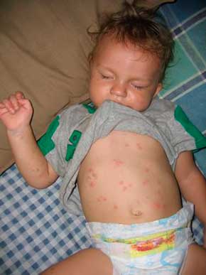 - множественные укусы по всему телу;